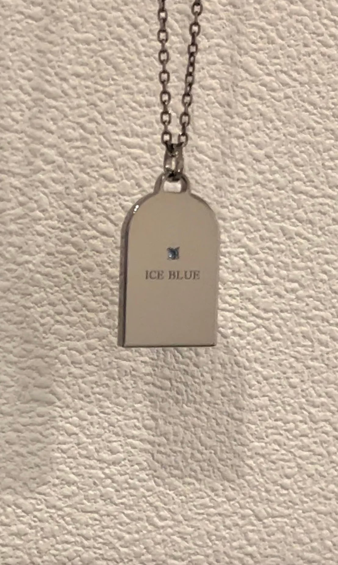 裏面には同じようにクリーニング効果があるといわれるICE BLUEの文字とアクアマリンがセッティングされたホオポノポノTITANIUM ペンダント。
